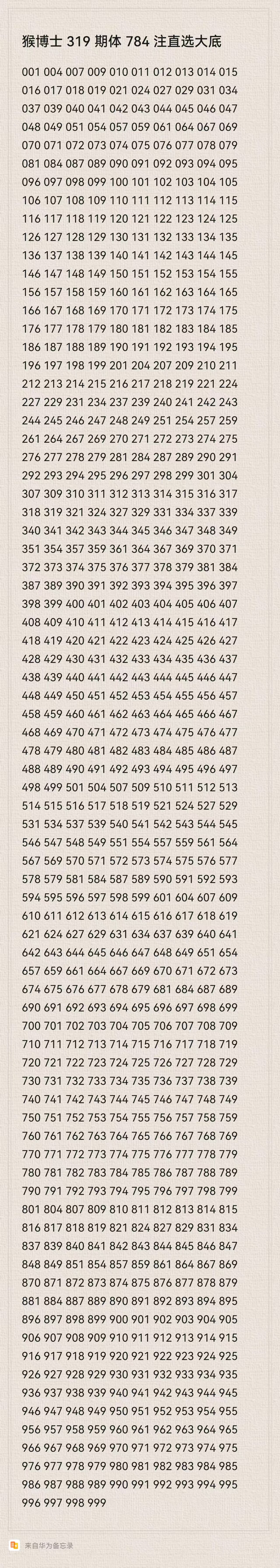猴博士319期排列三784注直选大底:(可以当母底用,然后进行缩水)
