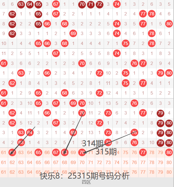 回顾25314期开奖号码:05 14 15 16 39 40 41 43 44 48 49 53 57 58 60 63 73 76 79 80 ,最近一段时间号码爆区几率特别高,目前已经连续多次出现爆区热开的情况,爆区之后基本上都是迅速回调,转换至其他区间继续暴热,大家若是能抓准区间,或许有很大的机会,但是号码的变盘规律是非常的快,很难把握,个人建议谨慎选择,不要 盲目的去操作~~