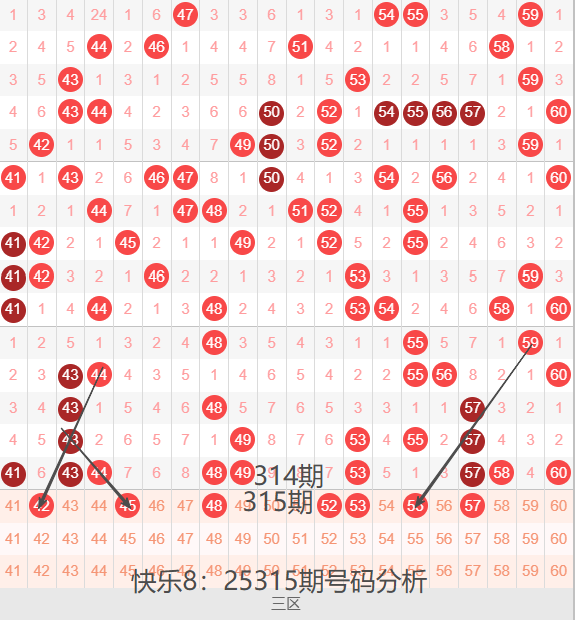 三区间41-60号码球走势,如下图: