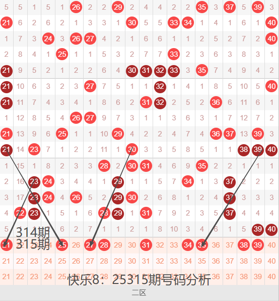 二区间21-40号码球走势,如下图: