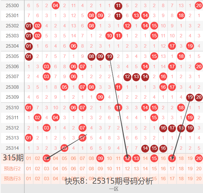 25315期,我们先看下一区间:01-20号码球,如下图: