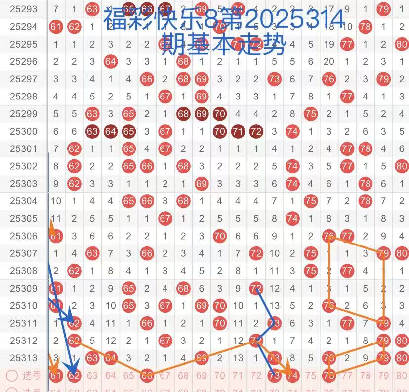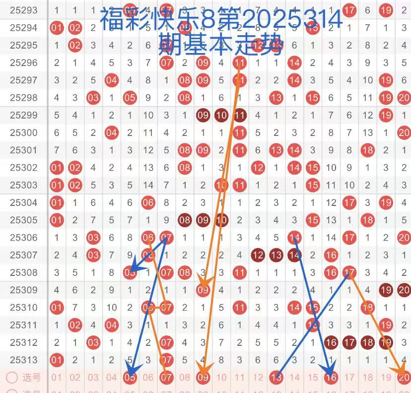 下面是我对2025314期福彩快乐8的分析和预判,希望通过我的分析能让大家今晚大满贯!福彩快乐8上期开奖号码如下图