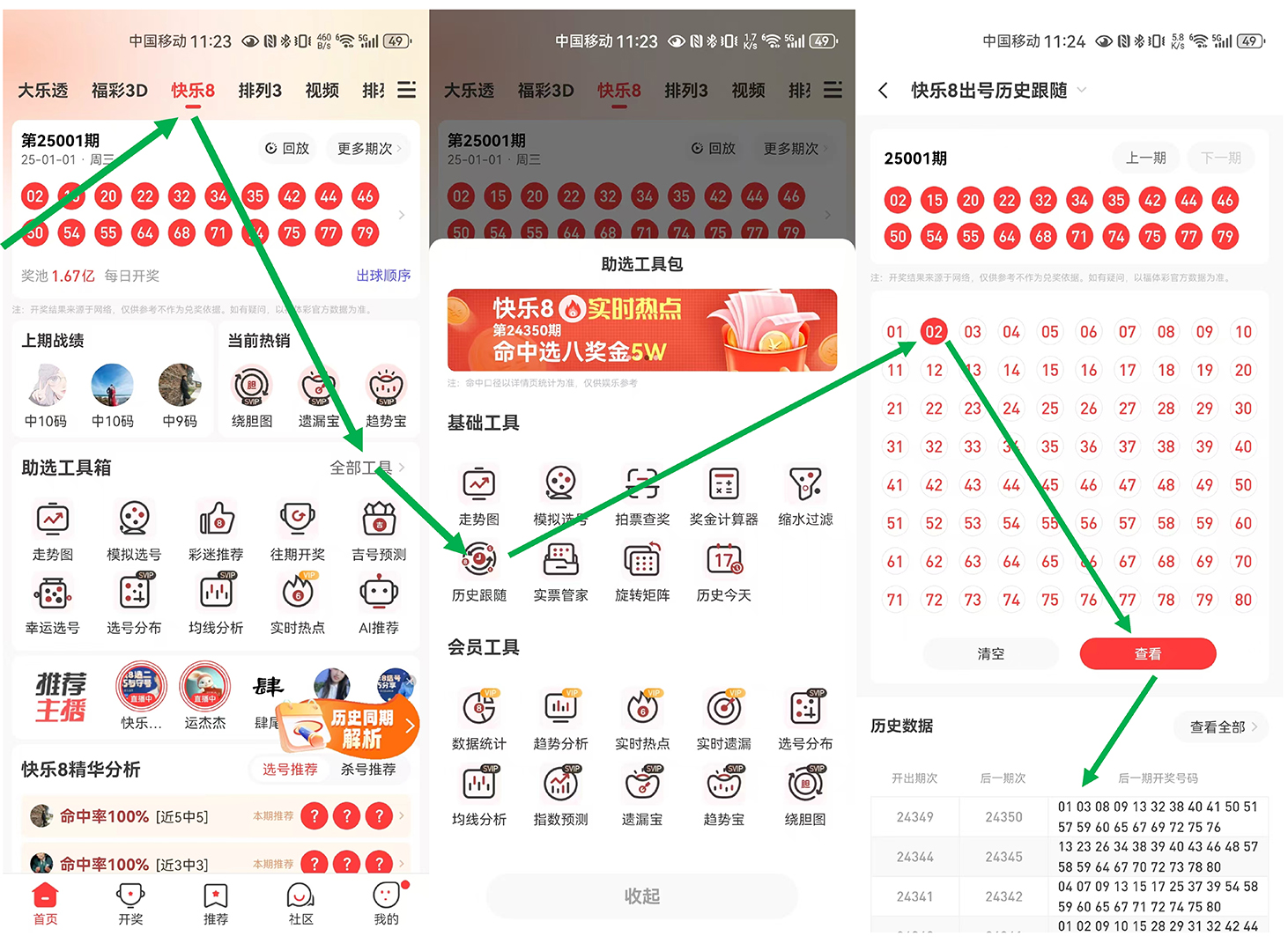 福彩快乐8跟随统计,在彩虹APP平台的工具里面有,可以参考下图例子找到跟随统计的数据。