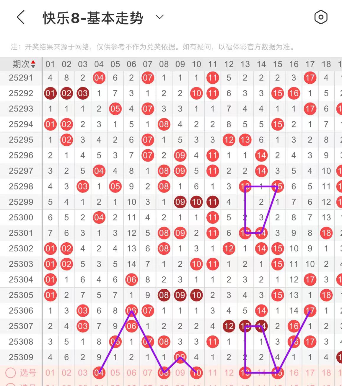 01-10区:本区间上期开出了一个号码,从号码走势图上看,该区现属于温热区,上期只出一个号码,本期注意出号个数增加至三个号码左右。本期有出号走势的号码有04号,斜连出号走势,08.10号,直接做分边出号考虑。