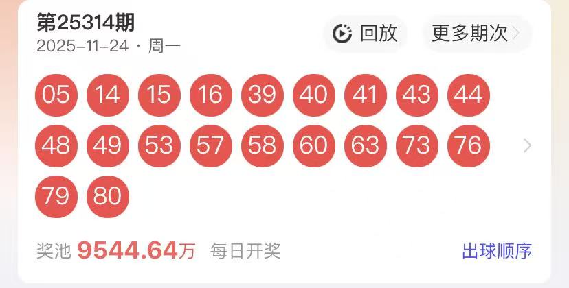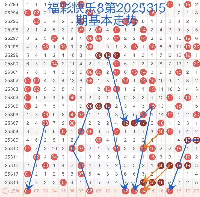 下面是我对2025315期福彩快乐8的分析和预判,希望通过我的分析能让大家今晚大满贯!福彩快乐8上期开奖号码如下图