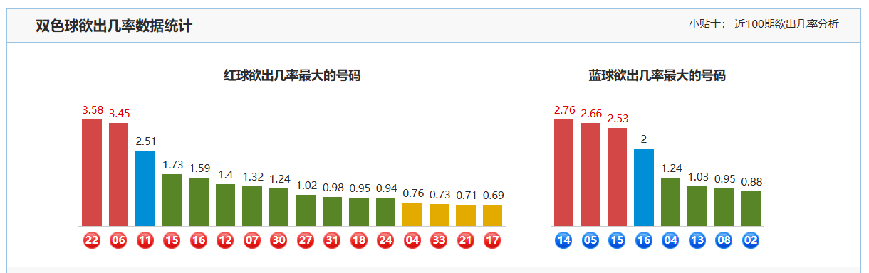 2. 大号(09-16):此区间在上期开出唯一的一个蓝球12,号码12遗漏1期后再次开出。从历史数据来看,该区间内的号码出现频率较高。虽然上期蓝球再该区间开出,但是本期该区仍然存在一定的出号率。因此本期可关注该区间内的号码,如号码09、14