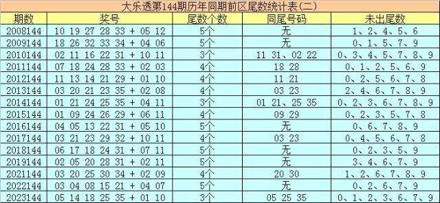 历史上大乐透第144期开出15次奖号,本期第2024144开奖: