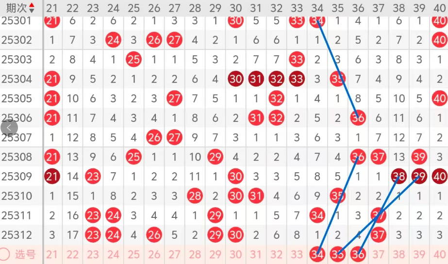 第二区间的走势分析:第二区间上期开出了六个号码球,主要的落号点位在二区间的前半区,走出了三奇三偶的形态走势,上期二区间前半区落下了区各号码球,后半区落下了一个号码球,整个二区间处于走势热的趋势,根据二区间的走势规律,今天的二区间我们主看后半区号码的落位,主看34 35 36这个三连码的落位,也是冷码的回补,34走出了上下对称的形态走势,35和36都走出了斜连码的形态,这三个号码球大家可以打个三胆拖,也可以打个三码复二!参考为主!