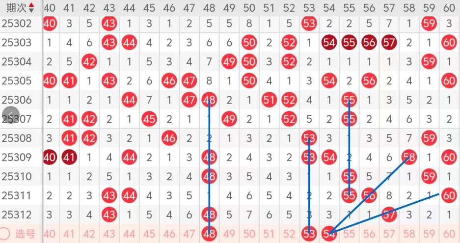 第三区间的走势分析:第三区间上期开出了三个号码球,主要的落号点位在三区间的前后半区,走出了两奇一偶的形态走势,整个三区间上期前半区落下了两个号码球,后半区大斜连57的落位,就是杀区段的号码球,整个三区间处于走冷的形态走势,根据三区间的走势规律,今天的三区间我们主看前半区48的重码以及后半区53 54姊妹对号码的落位,48走出了隔期对称的形态,53走出了重码隔3期的回补,54这个号码球走出了斜连码的走势,这三个号码球建议大家打个三码复二,参考为主!