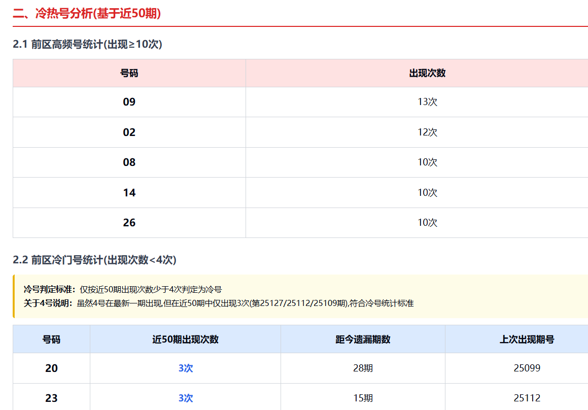 (4)前区高频与冷门号动态