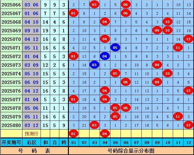 后区号码分析:在第081期历史同期开奖中奖,奖号07 09 10出现5次,奖号01 08出现4次,奖号02出现3次,奖号03 04 05 06 12出现2次,奖号11没有出现。本期后区五码参考01、03、04、05、07。