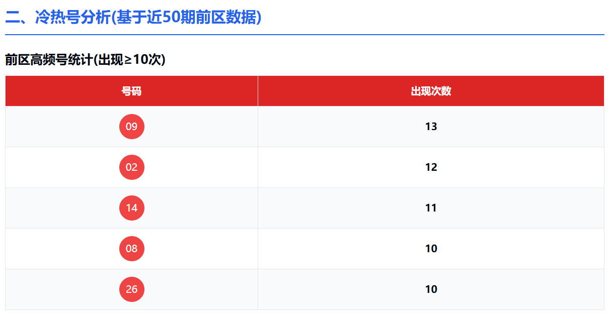 在高频号中,09以13次领跑,随后是02(12次)、14(11次)、08与26(各10次)。这五个号码构成了当前热势的“骨架”,分布在第一、第二与第四区间。尤其09、14这两个号码,热度不仅高,还常常与邻号形成联动(如09带08、14带13)。