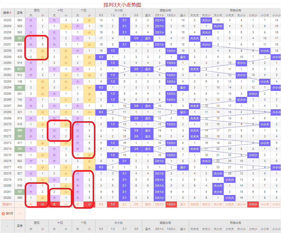 上一期大小比为2:1,两大的号码组合,近五期大号出10次,小号出5次,大号码出现较多,上一期是两大的号码组合,本期侧重两小的号码组合,百位本期侧重的小号码,十位本期侧重大号码,个位侧重小号码,侧重小大小或者小小大的号码组合,根据大小形态五码定位01234/56789/01234或者01234/01234/56789