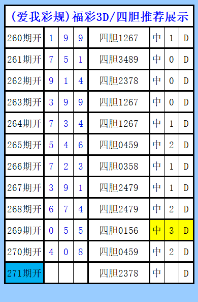 福彩3D第271期图文(爱我彩规),四胆推荐展示