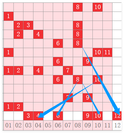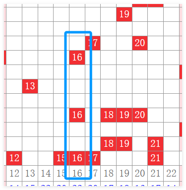 接下来我们先分析一下第一分区01~11这个区间的号码。上期开出连号0102,那么本期我们需要注意号码是要往右进行一个开出。那么往右的号码首先我们需要关注边号03 0,其次还要关注斜连号060910。这个是一区间几个非常关键的号码,主要的还是0路的369,包括1路号码04和10。