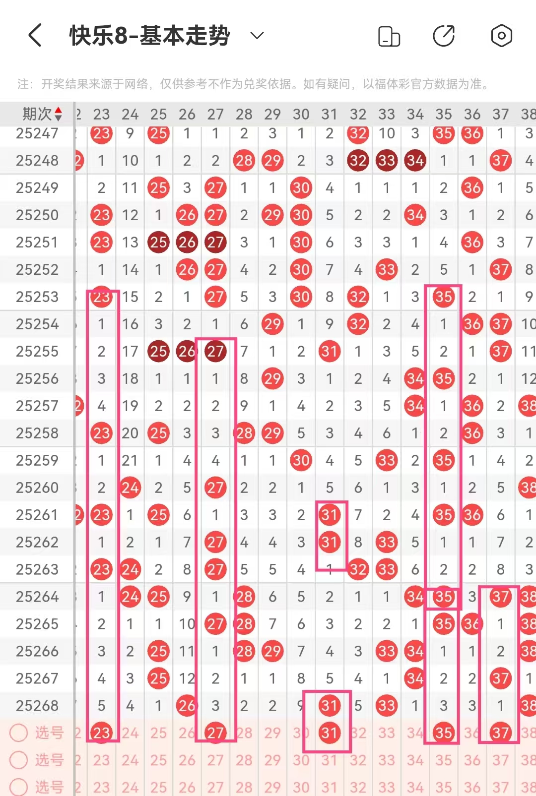 上期此区间开奖号码有5个,极为活跃,预计本期出号数量降低。该区质数仅 31,23 遗漏 5期,尾 3 补位关键,填补 20-26 段空白,奇数属性平衡偶数。尾 7 仅 77 出现,27 遗漏 3 期,与 26 形成邻号联动,冷区间回温阶段中段号码出号概率提高。31 上期开出,无遗漏,尾 1 补位核心,衔接 33 出号趋势,连号续出概率 提高,适配区间稳定出号趋势。35 遗漏 3 期,尾 5 仅 05、65 出现,填补 33-38 段空白,奇数属性修正偶数占比。37 遗漏 1 期,质数属性补充全区间缺口,与 38 形成邻号,适配区间降温需求。