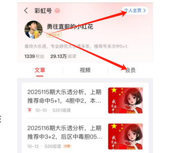 2、点击小红花头像,会员入口在文章的右侧;