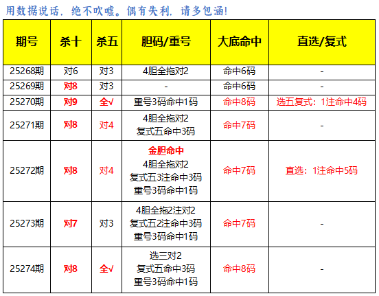 上期杀10码对7,免费文章杀5码对4,选五复式命中3码,选三对2,银胆命中,重号3码命中1码。