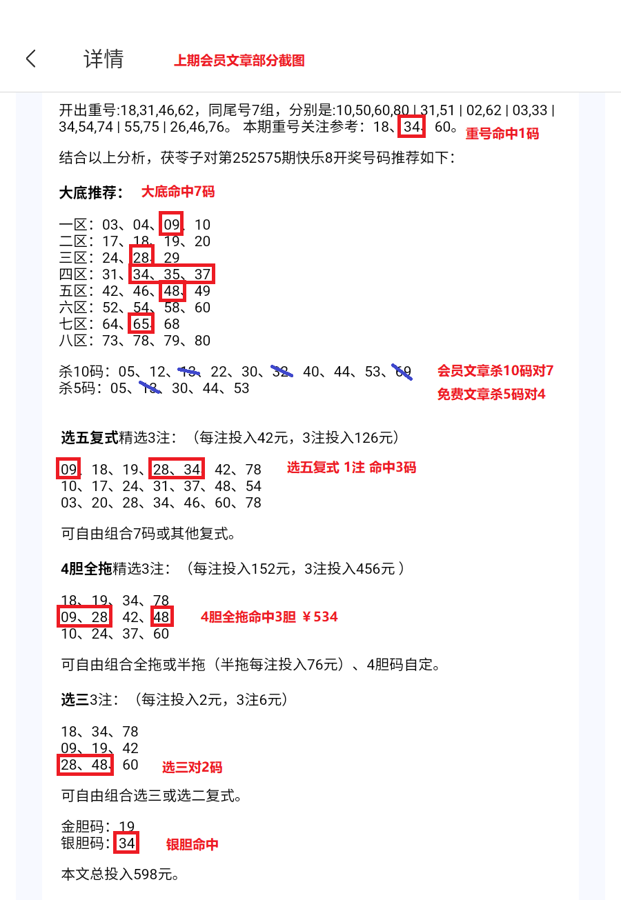 结合以上分析,茯苓子对第252576期快乐8开奖号码推荐如下: