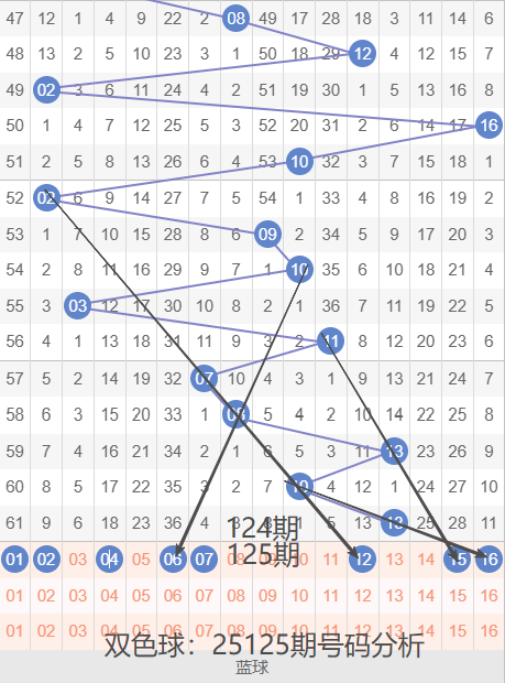 上期蓝球开出:13,奇数大号,该号码遗漏1期开出,近期号码在中后区间连续出号,防继续走出大号的趋势,近期关注一下2路号码的回补可能,个人本期预选蓝球:01 02 04 06 07 12 15 16中号码出现的机会比较大,本期个人看蓝球走中低位,同时防下上期号码的周边码,终选5码:02 04 06 12 16 。