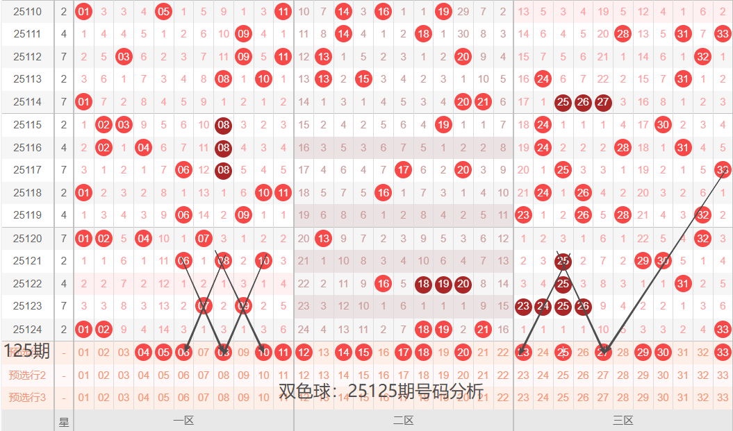 先介绍下上期开奖号码的基本情况,红球奇偶比:4:2,区间比:2:3:1,012路比:3:2:1,通过上期号码简单介绍,分享下25125期号码球个人认为的出号可能,供大家参考!