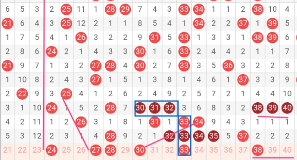 2、二区(21-40)数字走势分析: