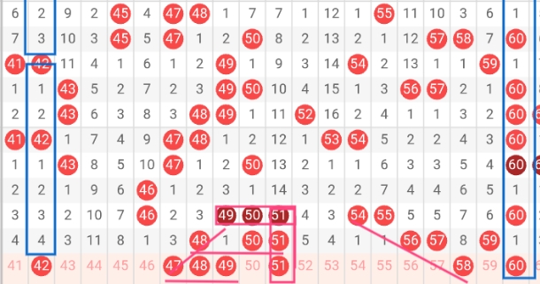 3、三区(41-60),数字走势分析: