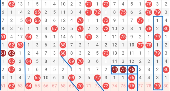 4、四区(61-80)数字走势分析: