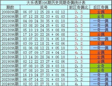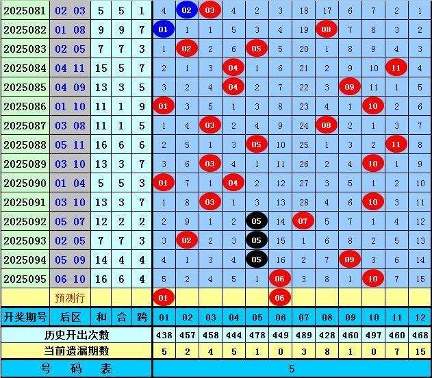 后区分析:在第096期历史同期开奖中,后区奖号奇偶比为14:20,最近5年同期后区奇偶走势为:全奇、全奇、一奇一偶、一奇一偶、一奇一偶,今年同期看好再出一奇一偶组合,关注号码01、06。