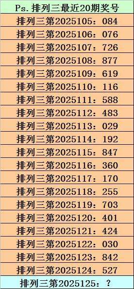 第2025124期排列三奖号为527,历史上该号码直选出现7次,下期奖号分别为:836、425、679、300、696、920。