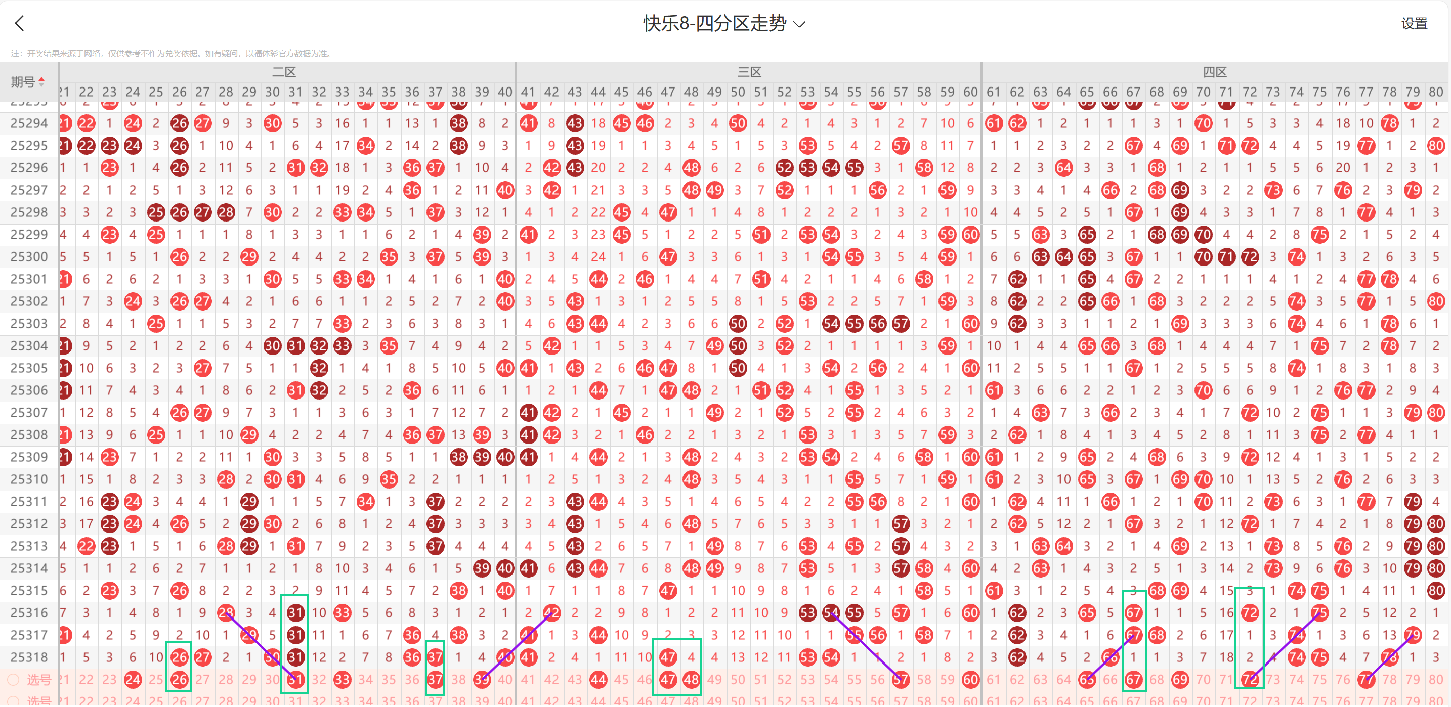 * 本区中部号码**47、48、49**近期遗漏较多,本期有解冻可能,可适当关注。