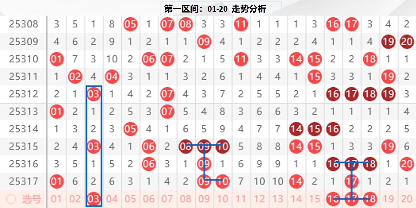 一区分析:【01-20】(走势图标注号码非小黄车大底,请谨慎参考,具体思路将在直播间分享讨论)