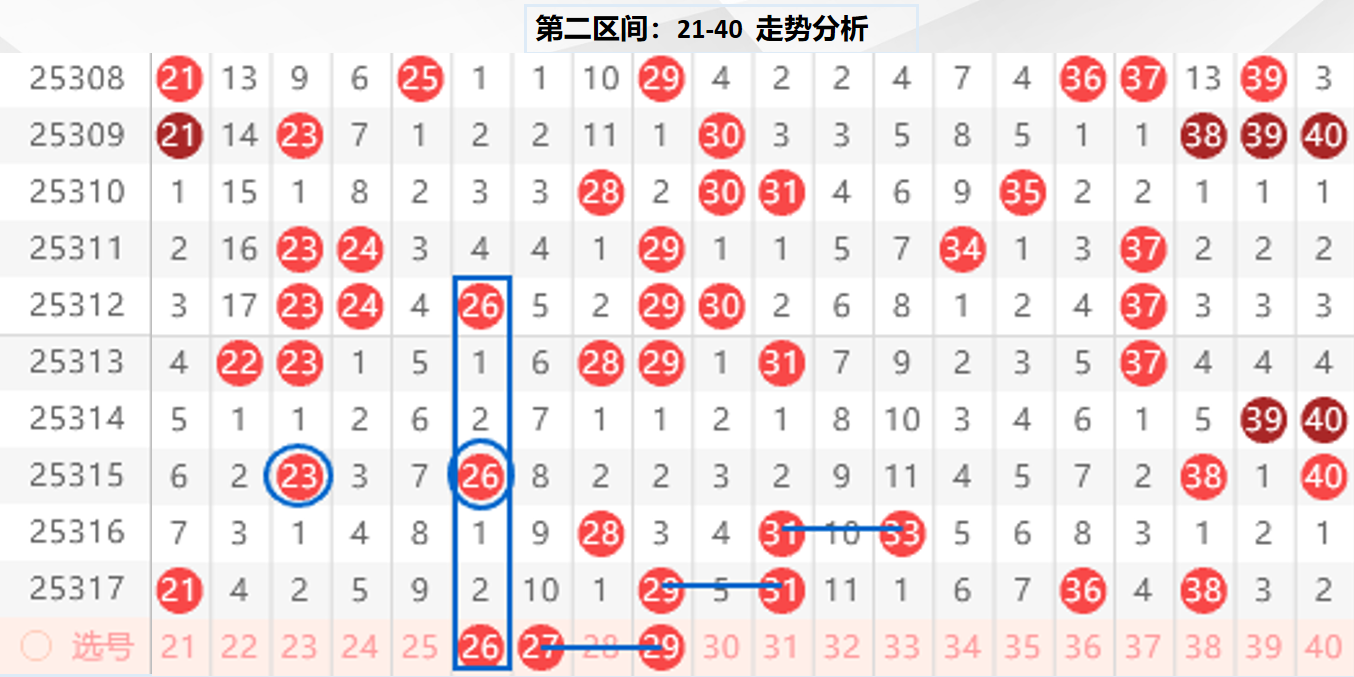 二区分析:【21-40】(走势图标注号码非小黄车大底,请谨慎参考,具体思路将在直播间分享讨论)