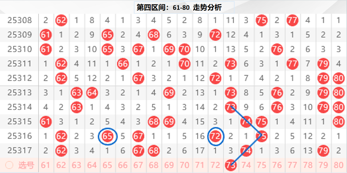 四区分析:【61-80】(走势图标注号码非小黄车大底,请谨慎参考,具体思路将在直播间分享讨论)