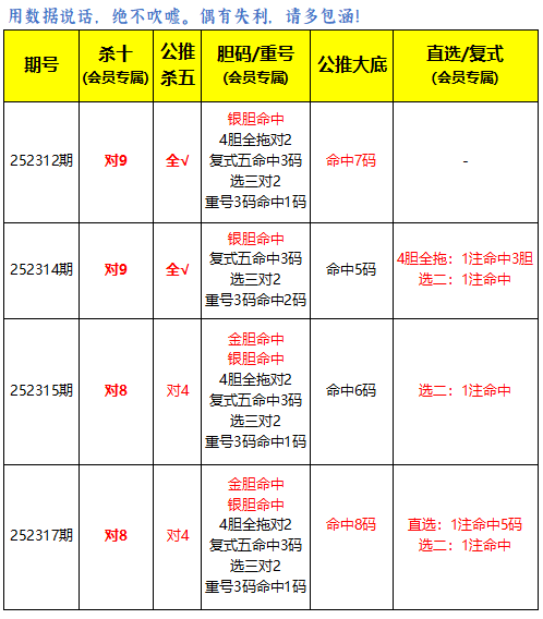 会员文章中金胆银胆均命中,复式五命中3码,4胆全拖命中2胆,选三对2,重号3码命中1码。