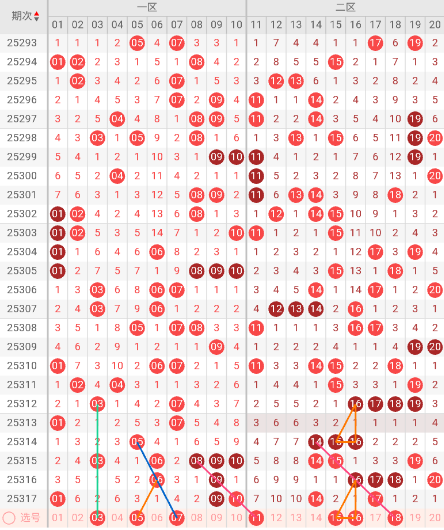 二区开出:14,17 奇偶比: 1:1 和值:31 跨度:3,上期开出2个号码,奇偶数号码均衡。本期三斜连走势:11 18,无隔码斜连走势,近10期平均出号2.7枚。推荐关注号码:11、15、18。